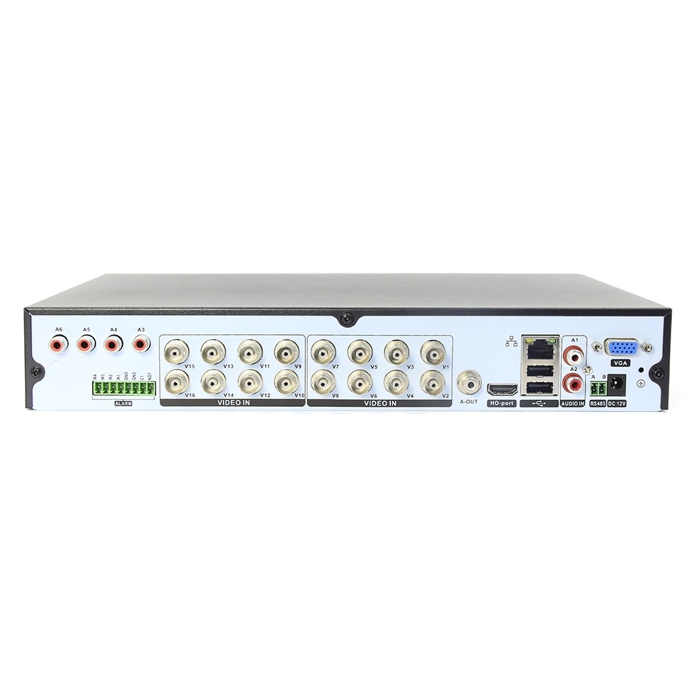 ВНИМАНИЕ: СОВМЕСТИМ С ВИДЕОКАМЕРАМИ AHD/TVI/XVI/CVI С РАЗРЕШЕНИЕМ до 5Мп (режим 5M-N) и IP-камерами до 5Мп. 16 канальный 5M-N/1080N XVI/AHD/TVI/CVI/CVBS/IP H.265+/H.265/H.264 DVR. Запись видео: 16 x 1080N 15 к/с / 16 x 5M-N 6к/с (AHD/TVI/CVI), 16x 1080P 8к/с (XVI); Воспроизведение: 16x1080N 15 к/с / 8x5M-N 6к/с (AHD/TVI/CVI), 16x1080P 8к/с (XVI);. Режимы видео: DVR: 16 кан. HD 1080N 15 к/с, 16 кан. HD 4М-N 9к/с, 16 кан. 5M-N 6к/с; HVR: 16 каналов HD 5M-N + 4 канала IP 2Мп; NVR: 4 канала 5Мп/3Мп, 16 каналов 1080P; Звук: 6 входов/1 выход. Тревога: 4 входа/1выход. Видеовыход: HDMI 4K /VGA 1080P, детектор движения, Сеть 10/100 Mбит/с, HDD 1xSATA (до 8 ТБ), 2xUSB2.0, Бесплатный облачный сервис XMEye, Беспроводное соединение 3G, WI-FI (внешние модули), Управление PTZ камерами по RS485 /по коаксиальному кабелю, 12В/4A, 325x250x52 мм