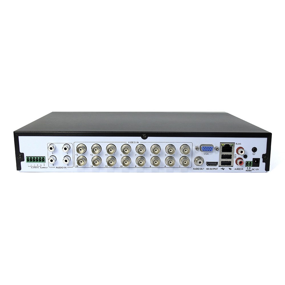 16 канальный 1080P AHD/TVI/CVI/CVBS/IP H.265+/H.265/H.264 DVR, Запись 16 x 1080P 18 к/сек (режим DVR), Воспроизведение 16 x 1080P 18 к/сек (режим DVR). Режимы видео: DVR:16 каналов HD 2Мп 18к/с, 16 каналов HD 5M-N 15к/с HVR: 16 каналов HD 2Mп + 16 каналов IP 2Mп NVR: 16 каналов HD 2Mп, 8 канала 3Мп, 4 канала 5Мп Аудио: 6 входа /1выход (G.711A), Входы тревоги 4/1, Видеовыход: HDMI /VGA, Детектор движения, Сеть 10/100 Mбит/с, HDD 2 x SATA (до 6 ТБ каждый), 2xUSB2.0, Бесплатный облачный сервис XMEye, Беспроводное соединение 3G, WI-FI (внешние модули), Управление PTZ камерами по RS485, 12В/4A, 325×250×52 мм